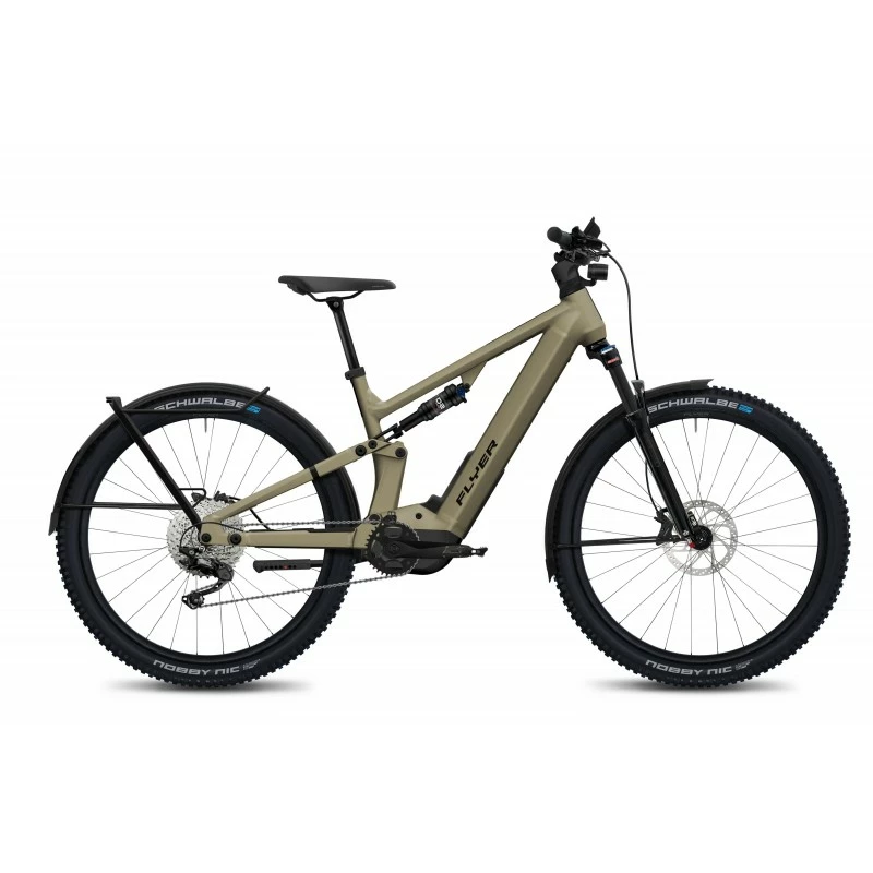 Version 4.10 : Batterie Flyer FIB 630Wh (S) 750Wh (M-XL) – Display FIT Compact – Fourche SR Suntour Aion35 Evo 140mm – Amortisseur X-Fusion 02 Pro RXL – Tige de selle Flyer Dropper Post MT214 – Transmission Deore 10v – Freins disques Shimano MT420.