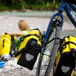 Le modèle classique de voyage ORTLIEB en tissu polyester robuste est conçu pour les lowriders à l’avant ou pour le porte-bagages arrière et convient également aux vélos pour enfants.